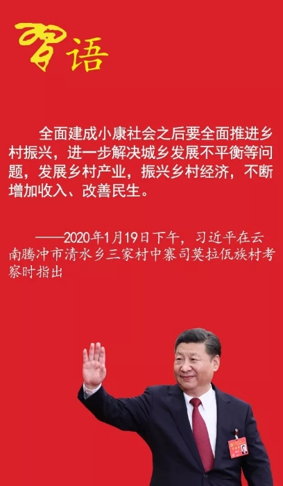 来源:党建网微平台 2020年1月19日下午,正在云南考察的习近平总书记来到腾冲市清水乡三家村中寨司莫拉佤族村,同村民们围坐在一起共话佤寨人民幸福生活。习近平指出,全面建成小康社会之后要全面推进乡村振兴,进一步解决城乡发展不平衡等问题。乡村振兴是习近平总书记一直念兹在兹的大事,曾在不同场合多次论述。党建网微平台整理了习近平关于乡村振兴的部分重要论述,一起来学习。