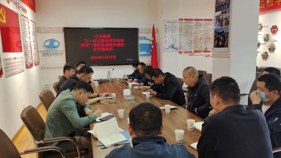 2023年3月26日18时55分,上海市一辆公交车滑入高虹路近七莘路河道内。经初步调查该公交车从上址终点站内驶出场区时,疑似驾驶员操作不当导致车辆失控滑入附近河道,过程中未与其他车辆和行人发生碰撞,未造成其他人员受伤。此次事故引起了中北集团党委高度重视,2023年3月27日,集团公司总经理助理(分管集团安全工作)在中北出租公司主持召开了昆明中北集团“3·26上海公交车坠河事故”通报及道路交通安全专题会议。集团下属旅游客运公司、中北公交公司、中北出租汽车公司、中北汽车租赁公司4家行车单位分管安全副总经理及部分安全管理人员到场参会。